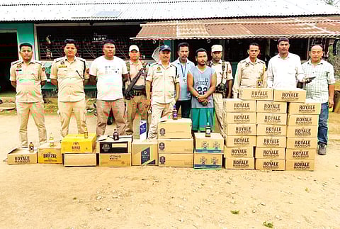JAMUGURIHAT: Acting on a tip off, a collaborative police team headed by DSP (Sadar) Biswanath Police, Sootea Police, and Itakhola Outpost managed to seize 32 cartoons of Arunachali liquor from the possession of one Bisti Basumatary, S/O Kameswar Basumatary, resident of No. 3 Balabari under Sootea PS of Biswanath district, on Sunday late evening. Based on reliable sources, the police team conducted a search in the house of Bisti Basumatary and recovered 32 cartoons of Arunachali liquor of varied brands. Police investigation is on.