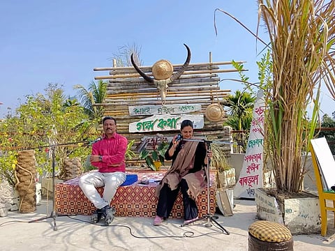 JAMUGURIHAT: Bonsai, an art, socio-cultural, literary and environment friendly and musical organization had organized a literary programme namely Golpo Kota at Sorusom hut, Bara Bhuyan, Sootea on Sunday. Eminent Assamese story writer Atanu Bhattacharya had founded Golpo Kotha, a literary programme with an intention to arouse an interest among the young generation people in reading books in 2007. The first edition of Golpo Kotha was held at Sootea in 2007. The 44th edition of Golpo Kotha was attended by the prominent Assamese short story writer cum executive editor of Satsari Atanu Bhattacharya and Mitali Dey, acclaimed classical artiste. Both the duo read out short stories in the programme while Harjit Singh sketched painting.