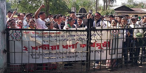 MARGHERITA: All Assam Gorkha Student Union (AAGSU) Tinsukia District Committee today staged a 2-hour dharna programme at Margherita in protest against the alleged misconduct to a 22-year-old girl by Dr Selix Alom, Gynecologist posted at Margherita FRU/civil hospital. The protesters, led by AAGSU Tinsukia District Committee, demanded capital punishment for Dr Selix Alom and justice for the victim’s family.