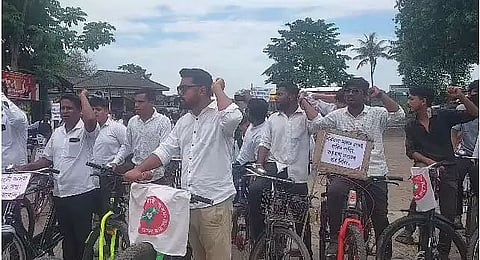 BISWANATH: The All Assam Students Union (AASU) has taken out a bicycle rally in the Biswanath region of the state in protest of the recent policies of the education department of the state government.