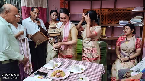Organizations such as Bordihingia Bornam Ghar, Natya Mandir, Moonlight Homestay, Ghanakanta Saikia and Tileswari Saikia Memorial Library, Komargaon Girls’ High School, and Bordihingia Primary School came together to honour Madhurima Choudhury. The event was hosted by Jatin Kakoti, retired headmaster of Komargaon Girls’ High School.