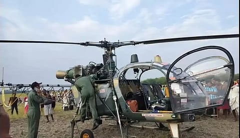 GOLAGHAT: An Air Force helicopter made an emergency landing at the Salikihat area in Golaghat district on Monday afternoon. It seemed to be a mechanical defect that the helicopter landed urgently in the open land of the area. Three Air Force officials were aboard the helicopter. There were no reports of any causality in the incident.