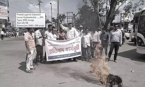 Nagaon: Along with rest of the State, Nagaon district body of Asom Jatiyatabadi Yuba Chatra Parishad (AJYCP) on Friday staged a sit-in against all ongoing construction of small as well as large scale hydro electric power projects across the State, in front of the office of Deputy Commissioner, Nagaon.