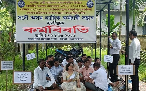 MARGHERITA: The Margherita unit of the All Assam Judicial Employees’ Association staged a protest and decided to refrain from their duties on Tuesday. This led to the complete stagnation of the legal proceedings in the Margherita Circle office for the day.