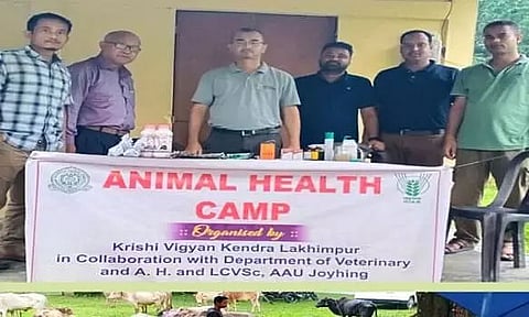 LAKHIMPUR: Krishi Vigyan Kendra (KVK), Lakhimpur, in collaboration with Department of Veterinary & Animal Husbandry, Government of Assam and Lakhimpur College of Veterinary Science, Assam Agricultural University, Joyhing, organised an animal health camp at Bherekichuk under Boginodi block on Friday. The treatment camp was conducted under the chairmanship of Dr. Prasanta Kumar Pathak, Senior Scientist and Head of KVK, Lakhimpur and officiated by Dr. Arindam Chakraborty, Subject Matter Specialist (Animal Science).