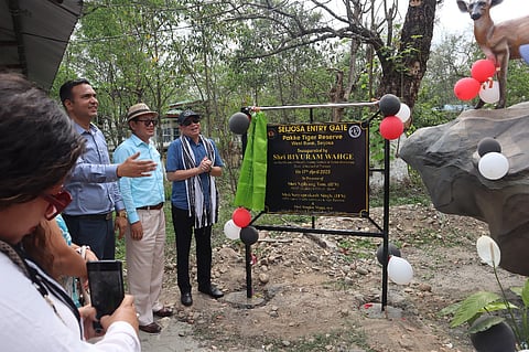 JAMUGURIHAT: Biyuram Wahge, Minister of Health & Family Welfare and Water Resources Department, Government of Arunachal Pradesh, inaugurated the newly-constructed Seijosa Entry Gate of Pakke Tiger Reserve (PTR) today, stated a press release issued by Satyaprakash Singh, IFS, DFO, Pakke WLS & Tiger Reserve. The inaugural ceremony was held in the presence of N Tam, IFS, Principal Chief Conservator of Forests (Wildlife & Biodiversity) and Chief Wildlife Warden, Government of Arunachal Pradesh, and Divisional Forest Officer, Pakke Tiger Reserve. The event was also attended by Kesang Wangda, In-Charge ADC, Seijosa, Singku Maga, RFO Seijosa Wildlife Range, Panjit Basumatary, Manager, CBRC, other range forest officers, Panchayati Raj Institution (PRI) members, local residents, and staff of Pakke Tiger Reserve.