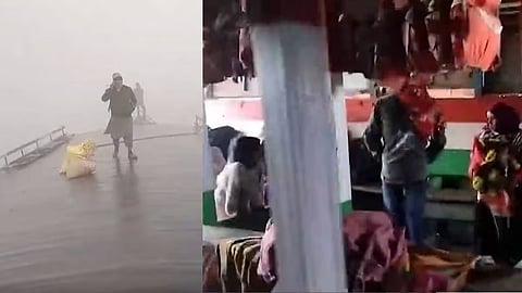 DHUBRI: On the night of January 2, a passenger boat carrying more than 50 people, including men, women, and children, became stranded in the Brahmaputra River near Dhubri due to dense fog and low water levels.