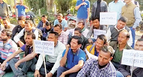 The workers’ union in their memorandum to State PHED Minister has raised multiple concerns, including the implementation of minimum wages as per labour laws, release from the User Committee and Panchayat Department and their appointment with salaries from the PHE Department, ensuring their social security and appointment of previous workers who have been waiting for employment. As a part of their statewide protest the Jal Mitras and casual workers staged a sit-in in front of office of Executive Engineer Tangla PHED on Monday. “Our repeated requests and protests, including democratic movements and several representations to the department and state government for our legitimate rights have been ignored so the union have decided for indefinite strike from January 3 last and the government will be responsible for any inconvenience due to disruption in water supply,” said Jal Mitra, Dhruba Swargiary.