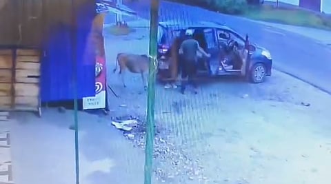 The footage, recorded by a CCTV camera installed at a commercial establishment, shows two individuals forcefully dragging two cows and loading them into a luxury vehicle. In a particularly heart-wrenching scene, a calf born just days ago was seen helplessly chasing the vehicle, which had its mother.