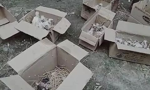 The birds and hatchlings could be seen crying out from within the boxes in the videos. In one video, all but one of the birds are immobile. Many of the 300 cattle egrets were hatchlings, which are unable to fly. The Chief Minister tweeted one of the videos and urged the Forest Minister to look into the matter.