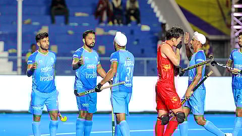 India continued to probe the Chinese defense with Rajkumar, Sukhjeet, Nilakanta, and Raheel, who were near to a penalty corner flick by captain Harmanpreet Singh.