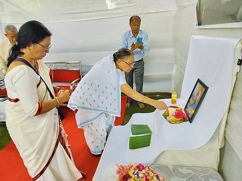 A banner was displayed showing Late Dr Baruah’s chronological biodata, family photos, condolence messages and various scientific meetings attended by him on various occasions like presiding over 85th session of Indian Science Congress, Physics section held in 1997 at Hyderabad.