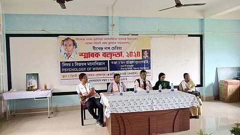 DEMOW: Under the patronage of Birendra Nath Chetia Social Trust and in association with Demow Press Club, a commemorative speech on the topic, “Psychology of Winning” was organized in the auditorium of Demow College recently. As per the schedule, the programme started with plantation of saplings in the memory of Birendra Nath Chetia which was planted by Hamida Begum, retired HOD of Sociology Department, Demow College. The earthen lamp in front of the photo of Birendra Nath Chetia was lit by Binod Borgohain, retired teacher of Athabari Higher Secondary School, Arpana Chetia, wife of late Birendra Nath Chetia and Demow Press Club members.