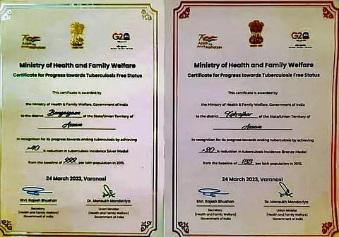 At the Sub National Certification for the year 2023, Bongaigaon District received Silver for a 40% reduction in TB cases and Kokrajhar District received Bronze for a 20% reduction in TB cases.