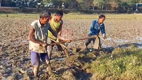 ASSAM: A group of twelve farmers from Kaliabor, Assam have initiated an exceptional agricultural movement by breaking free from the common trend in modern farming. Instead of relying on mechanization, they successfully cultivated 50 bighas of land at Debra Sang field in Amguri near the famous Kaziranga National Park within Kaliabor revenue circle.