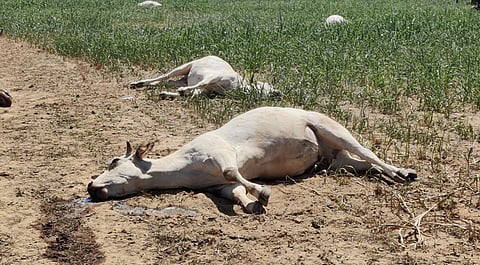 PATHSALA: In a shocking incident, five cows died after consuming a poisonous substance in a coriander field in lower Assam’s Bajali district. The incident took place at West Simlatola in the Sarupeta area. According to reports, local farmers Pratap Kalita and Nayan Kalita had cultivated coriander in their fields and allegedly mixed poison with chaff to deter cattle from damaging their crops. The owner of the cattle approached the Sarupeta Police regarding the matter.