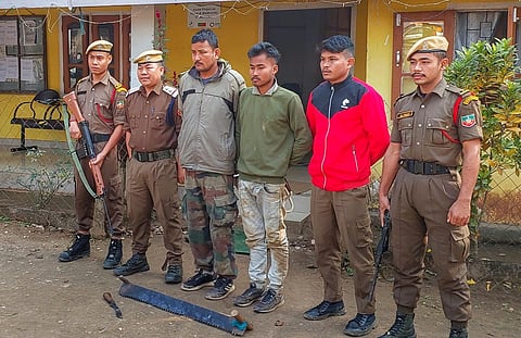 Boko: Assam forest team caught two smugglers red-handed while they were cutting valuable Sal trees at Mouman Reserve Forest under Singra Forest Range Office in Kamrup West Division on Friday late night. The forest team was led by Ranger Bhagab Hazarika, who said that they had information about the illegal activities and therefore they ambushed at that place. “While they were cutting trees, we heard sounds and thus we followed them and caught them red-handed. Equipment was also recovered which is used for cutting trees,” added Ranger Hazarika. Arrested two smugglers are Moon Rabha (35 years) from Mouman village and Bimal Rabha (25 years) from Bhogdabari village in Boko. According to the Hazarika a case has been registered against them and further investigations are going on. Ranger Hazarika emphasized that during the festive seasons including Bihu, New Year celebration and in the winter season, smugglers cut trees, making charcoal. Therefore the forest department is constantly patrolling in the forest areas.