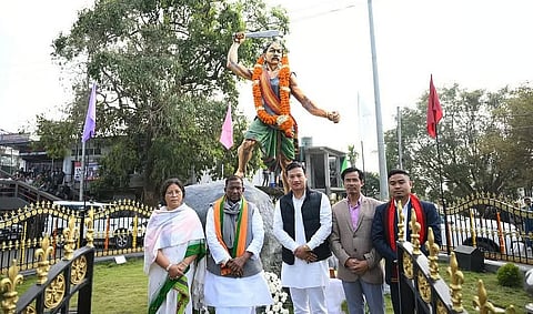 HAFLONG: Assam Governor Lakshman Prasad Acharya paid floral tribute to the statue of Freedom Fighter Sambudhan Phonglo on his 143rd Martyrs Day today at Haflong. The Governor was accompanied by DHAC CEM Debolal Gorlosa, Minister Nandita Gorlosa, Executive Members, MACs, and others. The Martyr’s Day observance was organized by the Dimasa Students’ Union.