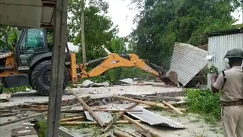 Barpeta: The Assam Police along with the district administration demolished a Madrasa in the state's Barpeta district here on Monday.