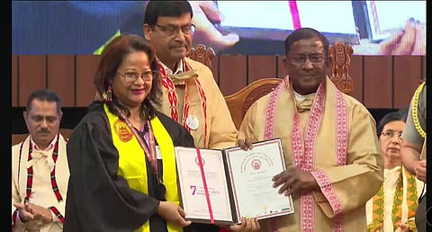 Dr Basumatari was felicitated for her achievement at a function organized by the Krishna Kanta Handique State Open University Study Center at Tyagbir Hem Baruah College today.