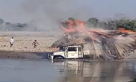 When the driver of the vehicle noticed that the vehicle had caught fire, he immediately brought the vehicle near a pond, after which, with the help of some villagers, the jute sticks were thrown into the pond. Shortly after, the police arrived at the scene and brought the situation under control with the help of locals. (ANI)
