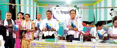 JAMUGURIHAT: Galpar Plat Bichari, an anthology of Assamese short stories and poems composed by Kabita Sarma, a retired teacher of Jamugurihat, was released at a function held at Bapuji Bhawan here with Tarun Barua, an eminent poet in the chair today. Dr Haren Saikia, a profound poet and a known poet, unveiled the book. The meeting convened by Jamuguri Kabi Mancha was attended by Nirmali Phukan and Minku Kalita besides dignitaries and eminent personalities of the area. It is to be mentioned here that Galpar Plat Bichari is Kabita Sarma’s second published book. Earlier to this, her poetry book Ankurita Kabita Mala is a widely read book.