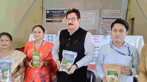 The technology will collect weather forecasts, soil quality, moisture, fertilizer application, pesticides, and crop diseases within a radius of two kilometers in the region and disseminate them to farmers through a special app, informed NABARD’s Assm Region Chief General Manager (CGM) Naveen Dhingra who also officially launched the packaging brand of Red Bao rice and Keteky Joha (Sugandhi) rice produced by Jakaichuk Red Rice Farmers Production Company and Mung Dung Farmers Producer Company at a meeting held at GauriSagar Bahumukhi Prakalpa Bhawan. CGM Dhingra expressed hope that the brand will capture the global market due to its super quality and nutritional value. The CGM also distributed loan sanctions letter to 113 farmers, an amount of 7.5 crore comprising SHG, JLG, KCC and MUDRA through Assam Grameen Vikas Bank(AGVB).