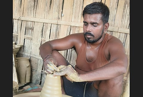 Ratan Pandit, a 30-year-old third-generation potter, is keeping their age-old tradition of making pottery alive. After completing his higher secondary education at DHSK College, Ratan Pandit entered his family business.