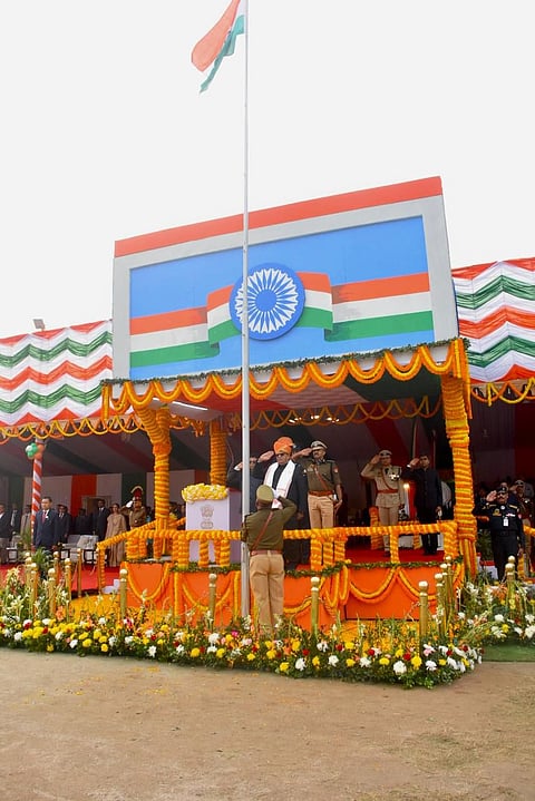 GUWAHATI: The 75th Republic Day was commemorated with fervor and patriotic zeal across various districts of Assam. In a momentous event at the Veterinary Field, Khanapara, Guwahati, the Chief Minister of Assam, joined by the Governor, presided over the celebrations that included a spectacular parade, captivating dances, and a medley of engaging programs. Gulab Chand Kataria took the honor of unfurling the national flag, symbolizing the triumph over colonialism and the establishment of the world's largest democracy.