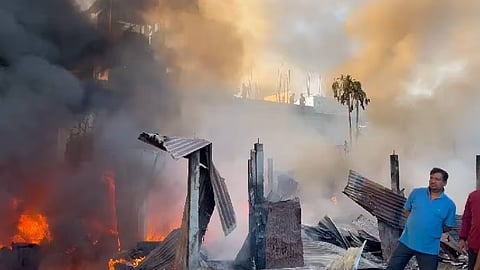 BOKAKHAT: A devastating fire broke out near Deithor Bridge in Karbi Anglong district, close to Numaligarh, around 11:30pm last night, causing extensive damage. The fire started in a warehouse owned by a businessman named Son Joysowal. The warehouse contained raw materials used for making brooms. Brooms worth nearly over Rs 1 million were destroyed in the blaze. A motorcycle was also severely damaged.