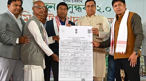 GUWAHATI: Jayanta Malla Barua, Minister in charge of Public Health, Fisheries, and Tourism, made a big leap in helping people and making sure land is given fairly. He led the way in passing out land rights to 8,039 people in Assam under a project named Mission Bashundhara 2.0. This was done at a special event at Nagaon Hajowa Pathar Auditorium in Naharkatia - a place where 3,757 people from Duliajan and 4,282 people from Naharkatia got their land rights.