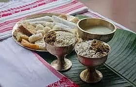 The best part of this festival is the cuisine, which is prepared using the many grains that were harvested. According to the year, the night before "Bhogali Bihu"—which falls on January 13 or 14—is referred to as "Uruka," which means the night of feasts. The community kitchens, or "Bhelaghor," which the villages erect, are where they start the celebration preparations.
