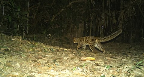 In a Facebook post, Assam Forest Minister Chandra Mohan Patowary wrote, “Exciting conservation news!! Our camera trap inside Dehing Patkai National Park just captured a rare sighting of elusive Marbled Cat. The marbled cat (Pardofelis marmorata) is a small wild cat native from the eastern Himalayas to Southeast Asia, where it inhabits forests up to an elevation of 2,500 m. It has been listed as Near Threatened (NT) on the IUCN Red List.”