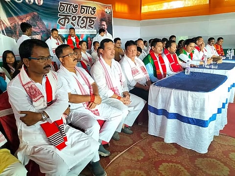 DEMOW: The Assam Pradesh Congress Committee in association with Thowra Block Congress Committee had organized the “Sange Sange Congress” programme in various places of Thowra Constituency on Thursday. Assam Pradesh Congress Committee president Bhupen Kumar Borah took part in the programme. He interacted with the people of Koiborta Dalani Mising Gaons of Saragua Gaon Panchayat near Demow of Thowra Constituency on Thursday. He took part in four meetings in Thowra Constituency on Thursday. While talking to the media here on Thursday, Bhupen Borah said that when the Congress party will come to power then they will give free electricity up to 200 units. He alleged that 90 percent of women have not got the Orunodoi Scheme. He said when Congress will come to power they will give Rs.2500 to all the general women of Assam in the Nalakshmi Scheme on 9th of every month. Assam Pradesh Congress Committee president Bhupen Kumar Borah was accompanied by Rana Goswami, working president, Bhaskar Barua, Titabar MLA along with other Congress leaders.