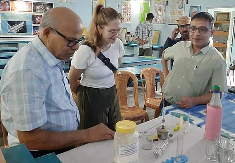 JAMUGURIHAT: A team of German scholars comprising Carolin Schonge, project coordinator of Childaid Network, Germany, and Abhijit Konch, senior program associate, Childaid Network based in Jorhat, accompanied by a team of Aide et Action, India, Sameer Dutta, Senior Project Manager (Education) and Rajat Hazarika, District Coordinator, Biswanath, visited the Akash Science and Environment Education Centre.
