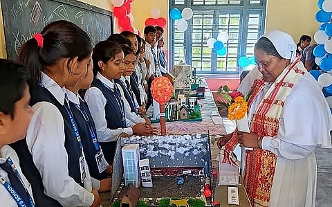 DOOMDOOMA: A science-cum-art and craft exhibition was held at St. Mary’s Higher Secondary School, Doomdooma on Tuesday. The students exhibited science models, art and craft items as well as various ethnic costumes, ornaments, food items and various elements of Xatriya culture.