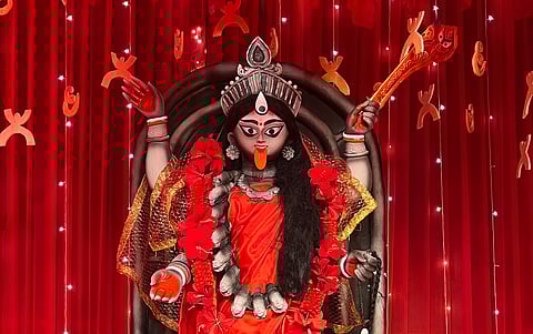 DIBRUGARH: The Shantipara second lane Kali Puja is one of the prominent Kali Pujas in Dibrugarh. This year, they have taken up Swastik as their theme. With all traditional rituals, the Kali puja was performed in the puja pandal on Thursday night.