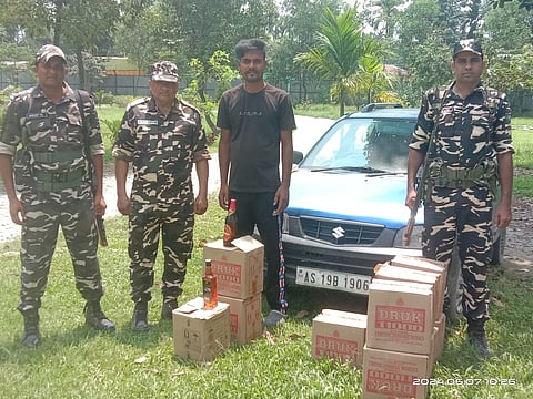 Sources from the SSB said the B.Coy of the SSB conducted a routine checking at Bharat-Bhutan gate, Dadgiri near border with Bhutan. The duty team stopped a Maruti Alto having No. AS-19B-1906 which was loaded with 12 bottles Bhutani black Mountain whiskey and 108 bottles Bhutan Druk beer strong-11000. When the duty party asked for proper documentation, the driver failed to furnish adequate papers. Consequently, the vehicle along with items were seized and the driver was apprehended and handed over to Land Customs Office at Hatisar, Dadgari. The apprehended person was identified as Bhupan Sutradhar, son of Bisturam Sutradhar of Hatisar village under Runikhata police station of Chirang district. The seized items included 12 bottles of Black Mountain whisky and 108 bottles of 11,000 strong Druk Beer.