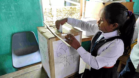 JAMUGURIHAT: To make the kids aware of the voting process and electoral system, the Khanaguri MV School, Sootea had organized students’ mock poll on Friday at the school premises. During the process, students were taught how to cast their votes on ballot papers and choose a person whom they want to be elected. The school authority had appointed one of the teachers as a returning officer for smooth functioning of the students election and nominations were accepted for five portfolios from the students. Similarly, students were given the duties of polling officials like presiding officer, first polling, second and third polling officers respectively.