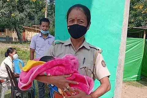 The constable Kache Beypi attended the baby while her mother was writing the Teacher Eligibility Test (TET) on October 31.