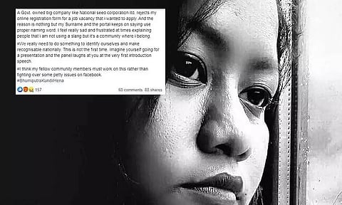 "A Govt. owned big company like National Seed Corporation Ltd. rejects my online registration form for a job vacancy that I wanted to apply. And the reason is nothing but my Surname and the portal keeps on saying to use the proper naming word. I feel really sad and frustrated at times explaining people that I am not using slang but it's a community where I belong. #We really need to do something to identify ourselves and make recognizable nationally. This is not the first time. Imagine yourself going for a presentation and the panel laughs at you at the very first introduction speech. #I think my fellow community members must work on this rather than fighting over some petty issues on Facebook #BhumiputraKundiHena (sic)", she wrote in her post that quickly went viral.