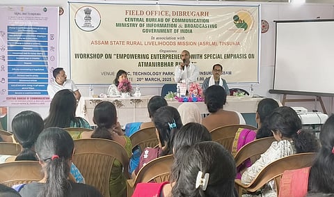 TINSUKIA: The Central Bureau of Communication, Ministry of Information and Broadcasting, Dibrugarh Field Office Government of India, in association with Assam State Rural Livelihood Mission (ASRLM), Tinsukia organized a day-long awareness-cum-workshop on ‘Empowering Entrepreneurship with special emphasis on Atmanirbhar Bharat’ at CMTC, Technology Park, Borguri, Tinsukia today.