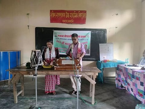 The Dakhin Nagsankar branch of Assam Nepali Sahitya Sabha (ANSS) had organized a day-long programme in the conference hall of Dakhin Nagsankar HS with Churamoni Dulal, president of the literary body, in the chair. Earlier to the open session, Purna Kumar Sarma, recipient of the translation prize of Sahitya Akademi, planted a sapling. The open session began with illumination of earthen lamps in front of the portrait of the adikabi and offering of floral tribute by Phanindra Upadhyaya, a retired teacher.