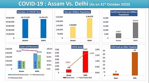 Assam Health and Family Welfare Minister, Himanta Biswa Sarma shared a comparative study of the pandemic in Assam and Delhi since its beginning.