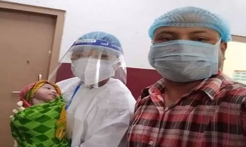 SILCHAR: Corona 19 second wave has turned most fatal than its first wave. The increasing numbers of positive and active cases and the resultant deaths have cast a gloom of despair in the country. But, handsome and healthy baby born to a Corona patient on Monday in the far off corner of the border town of Karimganj in northeast and the mother fighting back the virus to get well to be back home is no doubt a message of hope. The doctors, nurses and the health workers of Karimganj Covid Hospital have earned applaud from people in general. An elated Deputy Commissioner shared the photo of mother and the baby on his face book.
