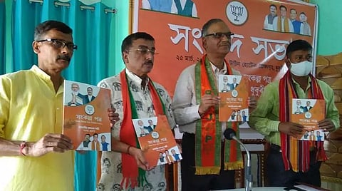 DHUBRI: Sankalp Patra of the Bharatiya Janata Party (BJP) was formally released in Dhubri on Thursday. Former Assam State BJP vice-president and member of the BJP State election committee (2021), Bimal Oswal formally released the Sankalp Patra and spoke at length on the main 10 resolutions. Oswal, flanked by BJP candidate from 23 no. Dhubri legislative assembly constituency, Dr. Debamoy Sanyal and in-charge Dhubri district BJP president, Prosenjit Dutta, said that it was not a mere party manifesto where some promises were made to the people to be fulfilled if the party came to power, but resolutions with strong and honest commitment.