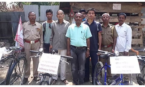 As part of the programme, they conducted a bicycle rally on Sunday from Dhakuakhana to Ghilamora Meleki. These environmental activists are Dhrubajyoti Chetia, Bikash Chetia, Chittarabjan Borphukan and Koushik Dutta while the Forest department employees are Umakanta Bhorali and Bisob Das.