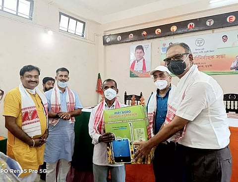 DHUBRI: The Dhubri district unit of the 'BJP Kisan Morcha' distributed spray machines at a meeting held in the premises of the Lions Club Dhubri on Friday. In the meeting five farmers were felicitated by providing them with spray machines.