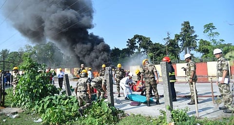 Bongaigaon: Bongaigaon Refinery, in association with district administration, Chirang, conducted a full-scale Offsite Disaster Mock Drill on Thursday at 1:00 pm in compliance to the statutory requirements. The simulated scenario for the mock drill was that after loading of LPG from BGR, one LPG tank truck (TT) was moving towards Chapaguri through service road beside NH-31C. At the same time, one RPC truck was coming out from BGR PSF gate after completion of loading. While coming out from PSF gate, the RPC truck hit the loaded LPG TT in the service road in front of PSF gate. LPG started gushing out due to crack in the loading connection. LPG vapour cloud formed and travelled inside BGR as per prevailing wind direction and got ignited due to nearby gas cutting job using DA cylinder. The DA cylinder got ignited inside the refinery aa a result of which fire took place in LPG TT and surrounding area outside the refinery boundary leading to off-site disaster.