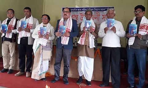 The programme started with lighting of lamp lit by Tukheswar Borthakur, former Principal, Gaurisagar Higher Secondary Industrial Institute. Sabharam Bharali, a resident of Dikhowmukh Bharalua village and former Vice-Principal of Dikhowmukh HS School, has already written three books and many articles. Jibon Chintar Phasal is his third book and includes 29 articles on important topics.